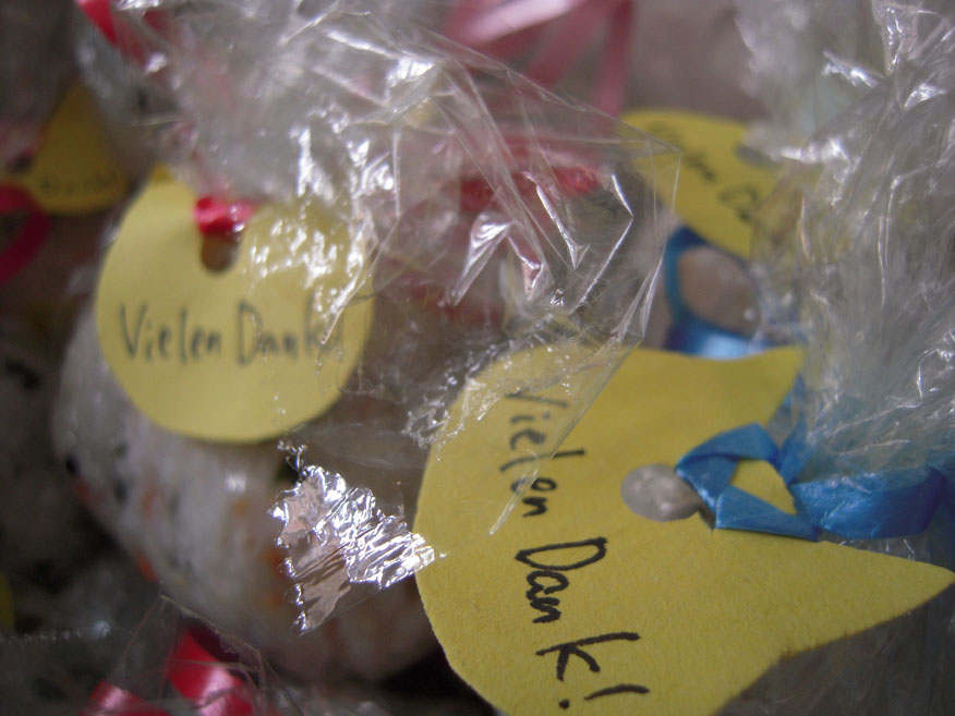 ネコ型のタグには、ドイツ語で「いろいろありがとう!」って書いてあります。